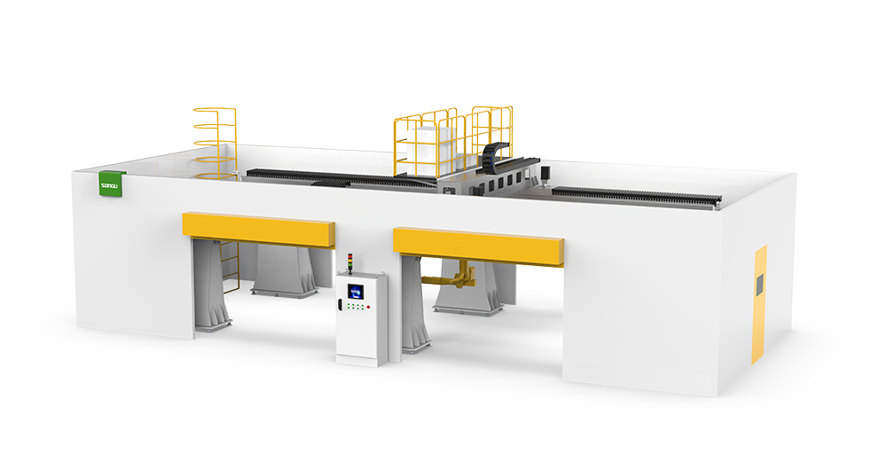 松谷激光科技WMT系列高架龍門三維光纖激光焊接工作站,高精度機器人倒掛式安裝,可加工范圍大,采用大行程、高剛性龍門結構設計,響應速度快,穩定高效。高性能數控系統,可實現多軸聯動控制,可進行多工作空間設定,適用于大型汽車鈑金零部件,大型箱體,鈑金五金霧部件的焊接,該機型可配置三維切割機型;